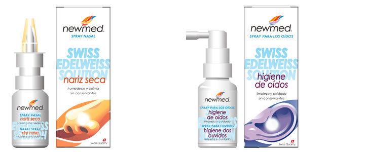 Productos para oídos, nariz y garganta. Todas las formulaciones de la línea newmed están libres de conservantes, lo que hace que sean muy bien tolerados.